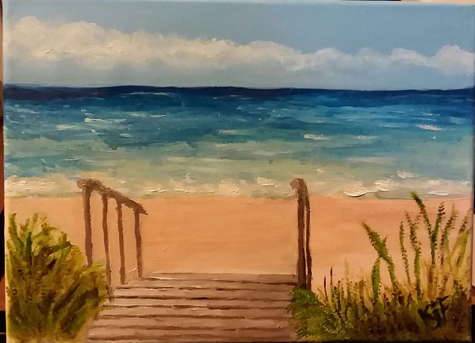 I started my second painting within my art class but…. Covid. That dreaded pandemic that we thought would last two weeks. I remember being in class and one student said she wouldn’t be back because of this disease going around. This was before mandatory quarantine.